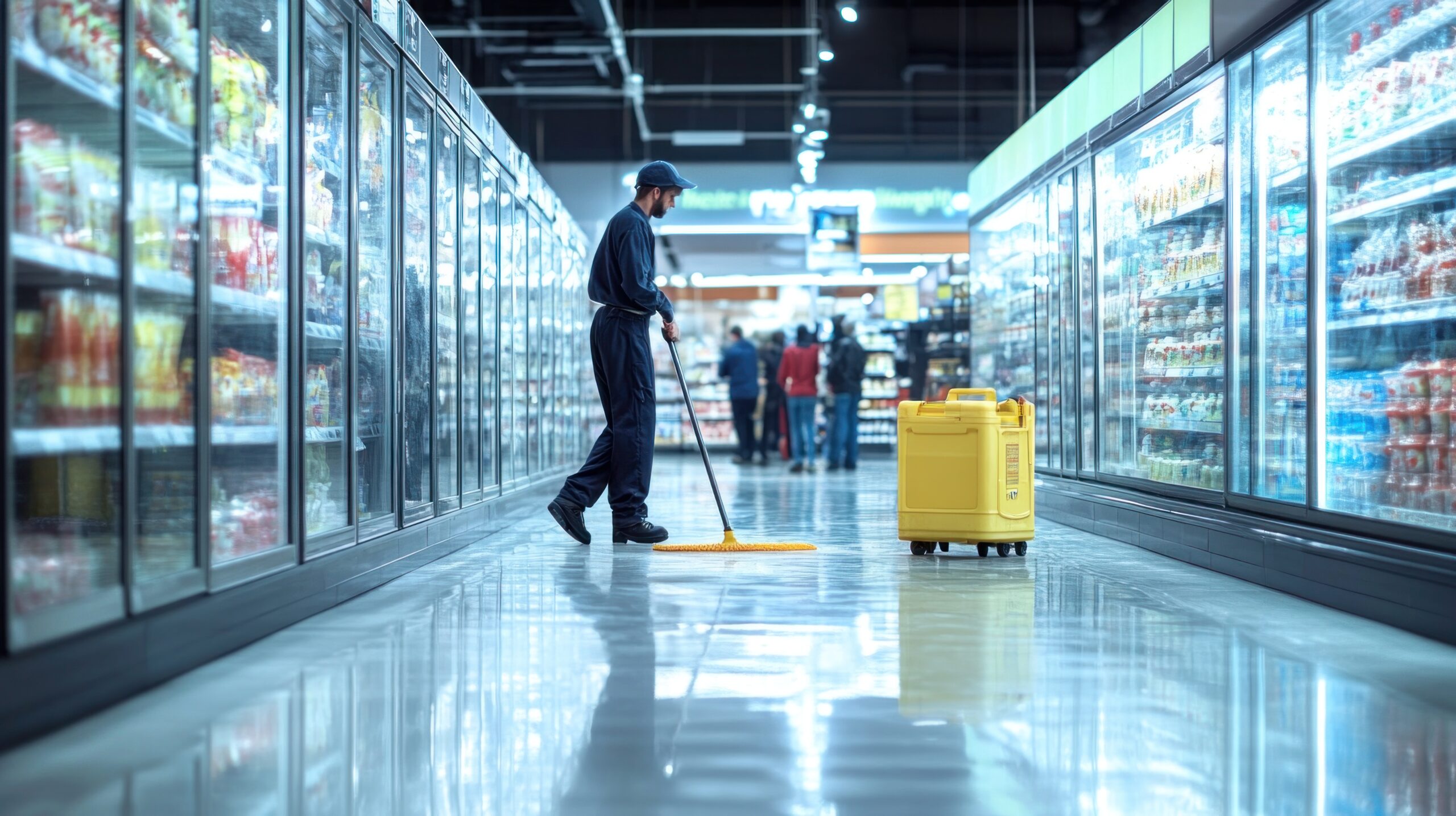 ● Storefront and display area cleaning ● Shelf and product surface sanitization ● Floor and aisle deep cleaning ● Cold storage and refrigeration unit hygiene ● Restroom and staff area sanitization ● High-touch surface cleaning (doors, counters, payment points) ● Waste and packaging residue removal ● Compliance with retail hygiene standards ● Scheduled cleaning programs for stores and markets ● Customized solutions for supermarkets, groceries, and retail outlets
